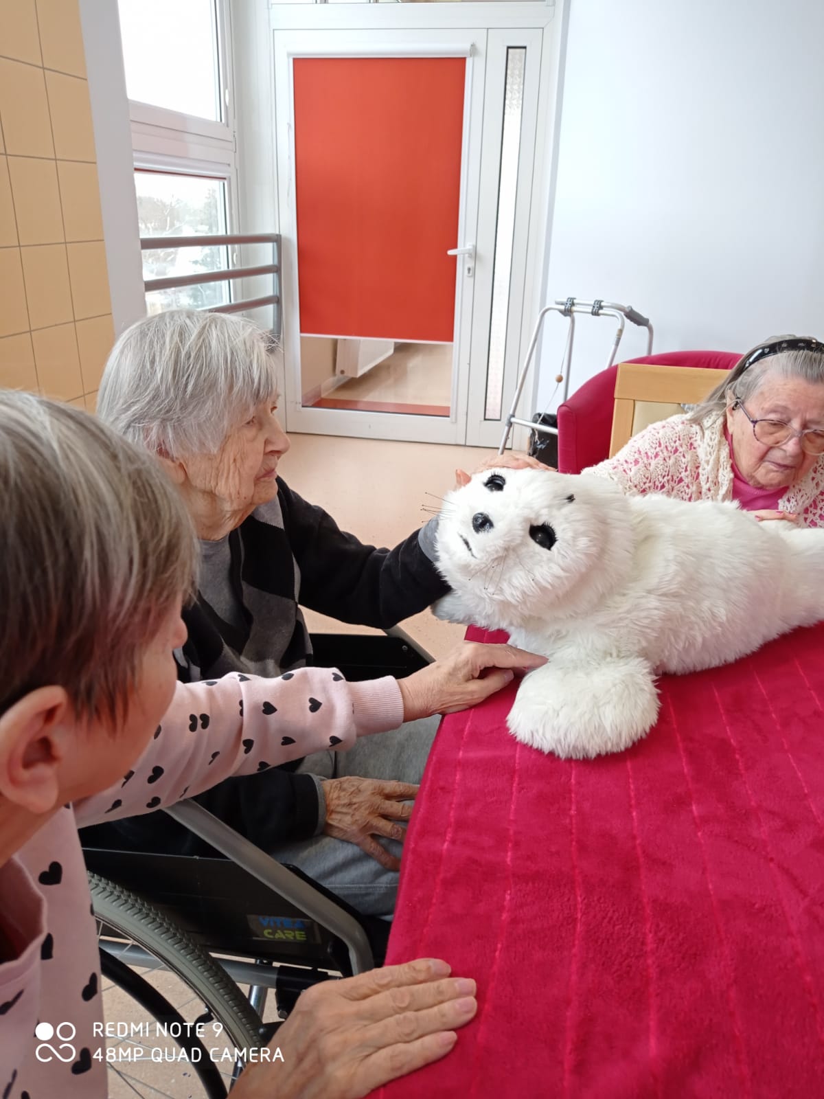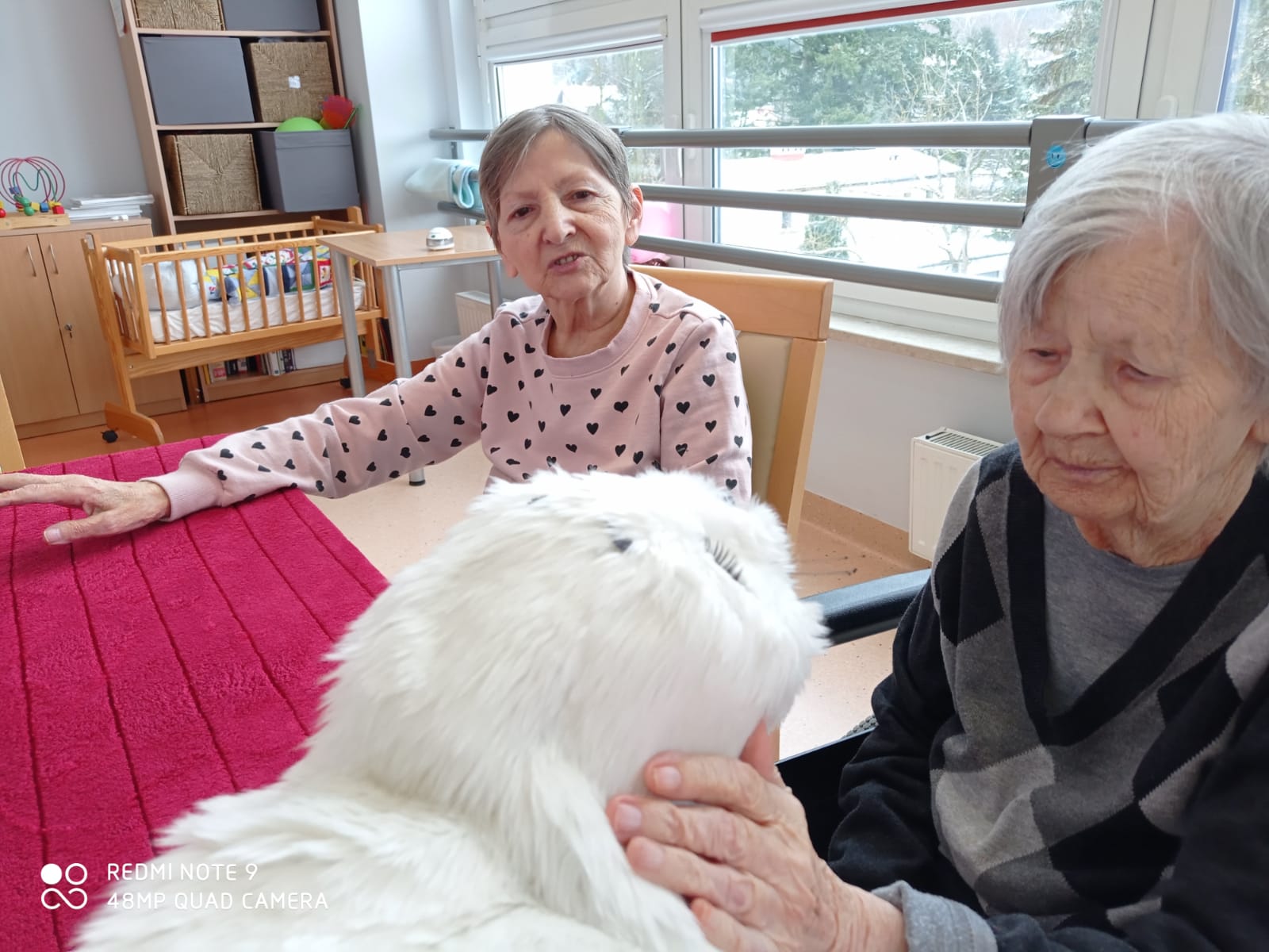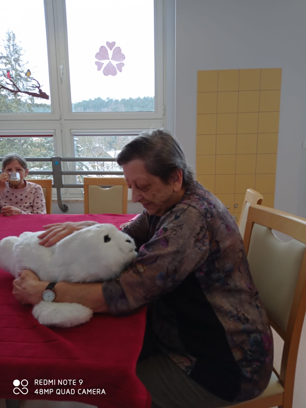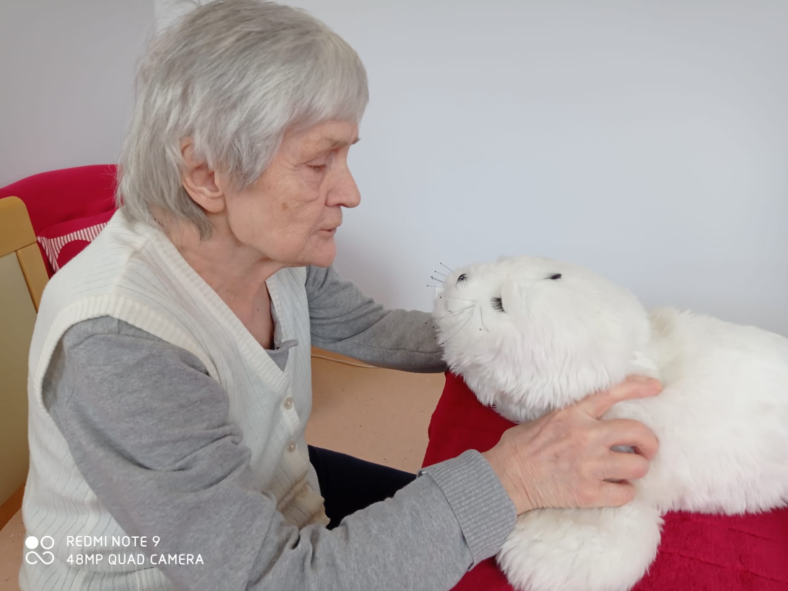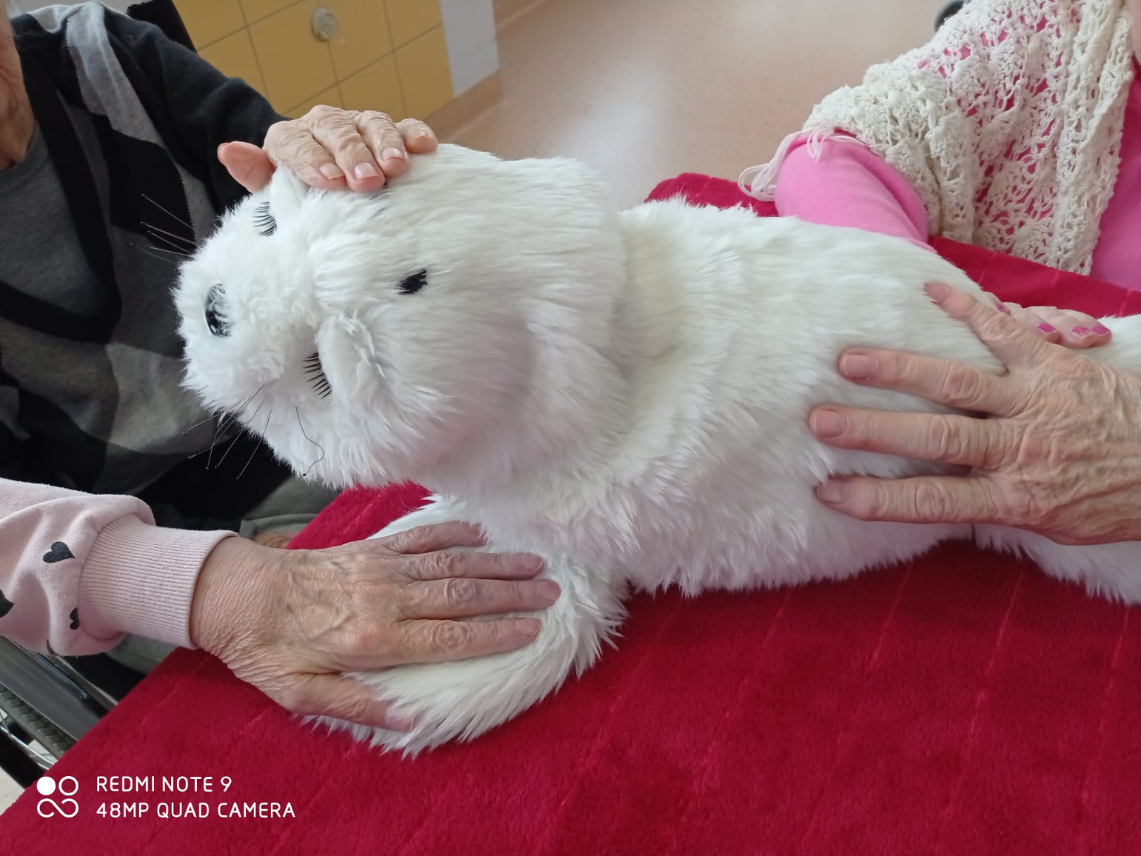 Podczas zajęć terapeutycznych osobisty robot Foka Paro wspiera komunikację, integruje, relaksuje, uspokaja, wywołuje uśmiech i dobry nastrój.